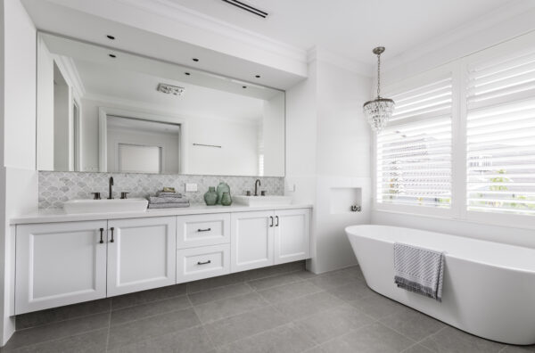 Add a deluxe touch with elegant tapware in platinum or chrome, featuring designs inspired by art deco styles. There’s a nod to the classic, while being a comfortable fit for both traditional and contemporary home designs. The tapware is often complimented by a beautiful free-hanging bathroom mirror in lieu of a standard wall-mounted frameless mirror.