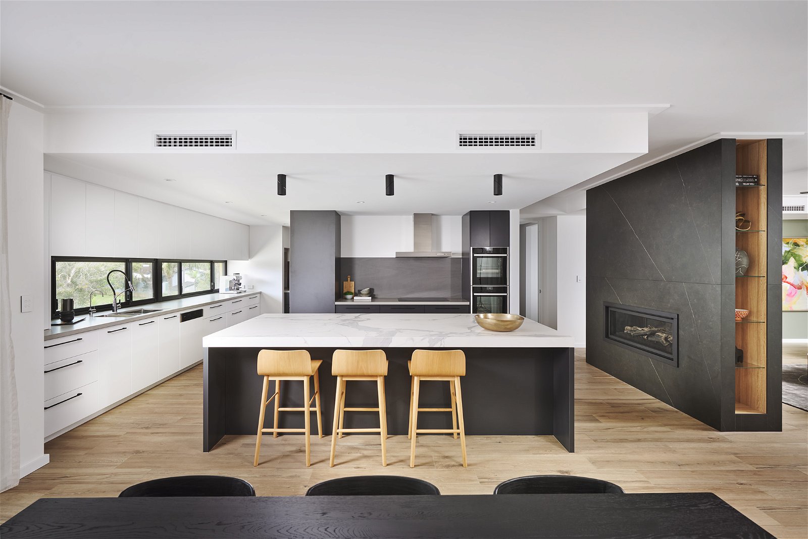 The block position played a massive influence on the design of the home, described as “the side of a mountain” with a 5.5m slope across the site. This provided a unique challenge for our team, having to work with existing levels and contours of the block whilst keeping with the local council planning policy. The result, a cleverly considered split-level design covering over 514m2 which fit the client’s brief to a tee and took full advantage of the amazing views.