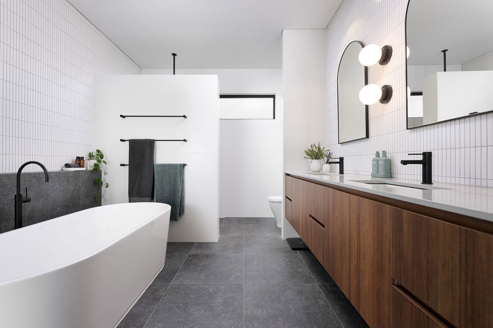 A sleek and austere façade belies the mid-century charm and warm timber accents within The Ellora. The monochromatic colour palette and sharp lines are continuous from the exterior to the interior, contrasting with utmost intention against soft colours, bold textures and contemporary finishes.