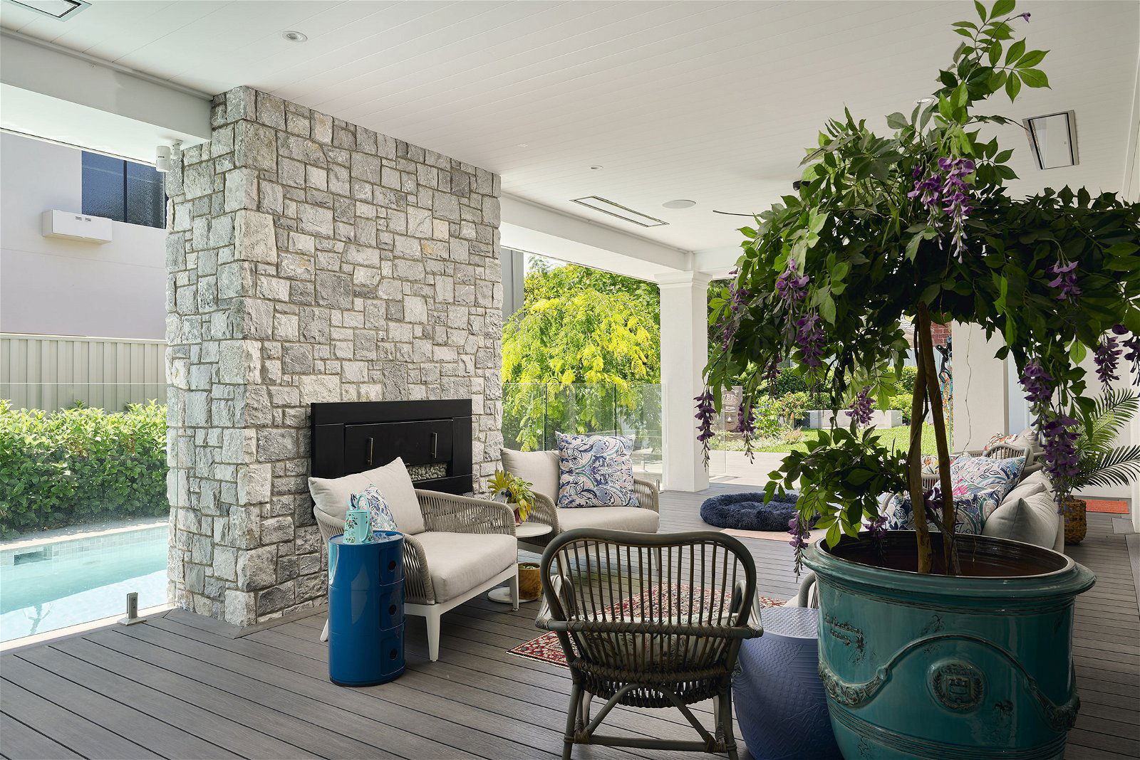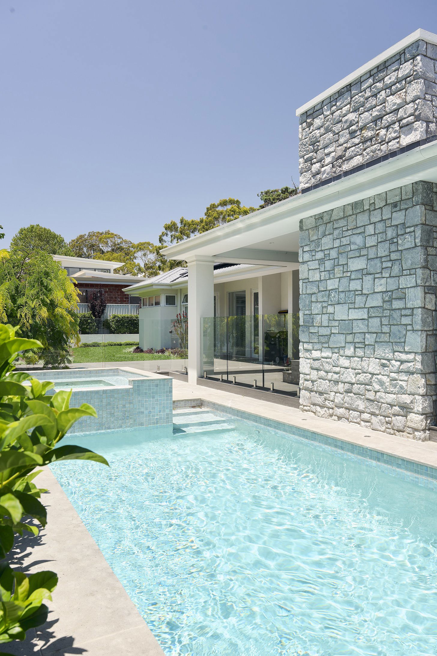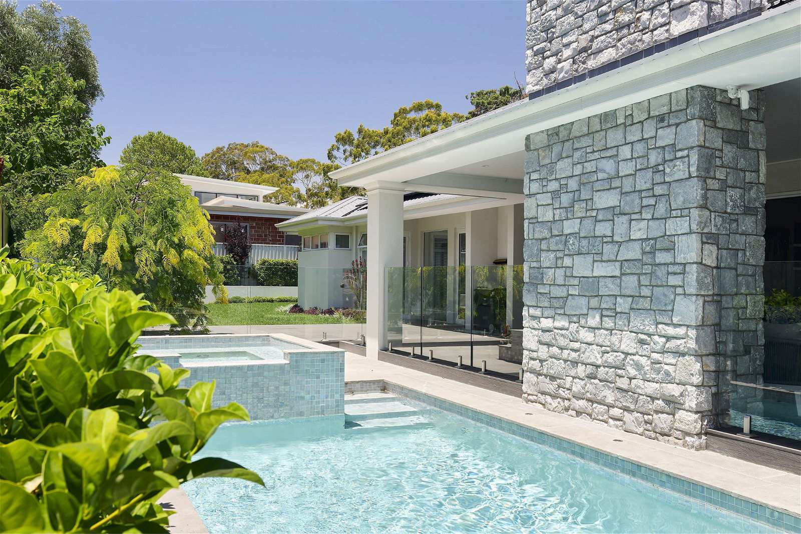 The outdoor oasis is crowned by a breathtaking pool, accompanied by a stone wall that underscores the seamless indoor-outdoor connection so desired in our Australian climates.