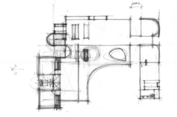 In keeping with the effortless and airy feel, the innovative floorplan centres around a courtyard, encouraging inside spaces to spill naturally to the outdoors. This sunny space boasts a wide alfresco, pool, outdoor shower and feature face brick wall. Inside, the children’s rooms, each with a private ensuite, open onto an expansive shared activity space. At the opposite end of the home, a guest room and ensuite adjoin a spacious second study. The main living and dining areas, open-plan in concept, flow through to the large chef’s kitchen where the hub of the home shines. Underscoring the contemporary yet relaxed aesthetic are high ceilings, open tread timber stairs and occasional timber panelling.