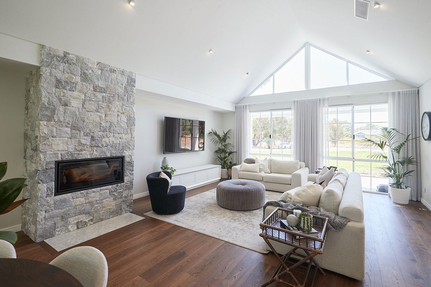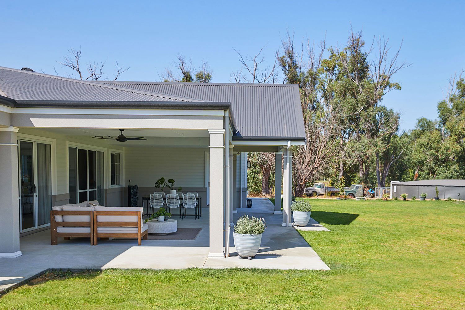 Designed for indoor and outdoor living, this Banjup residence feels right at home within its natural surroundings. Step inside and you are welcomed with bright interiors, tall windows and raked ceilings bathed in natural light.